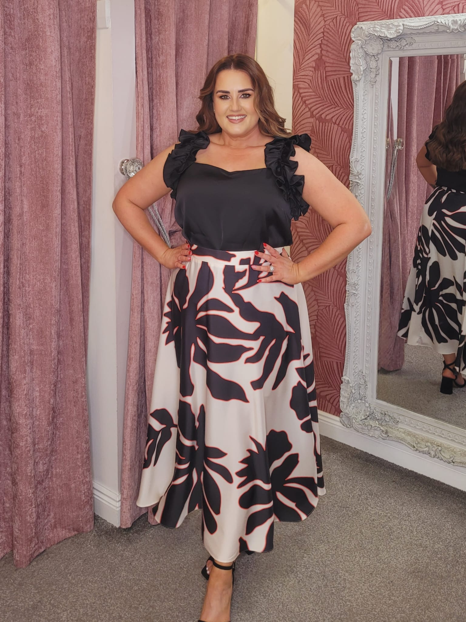 Square neck cami with ruffle detail on straps in a satin feel fabric